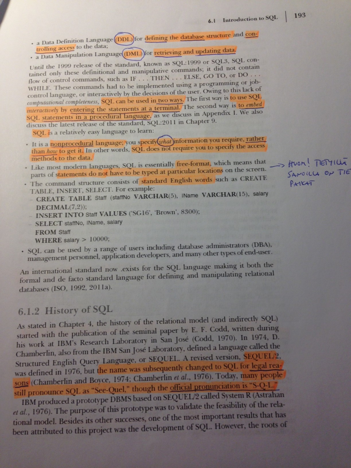 - tosin jossain tietokannoissa saattaa olla täysin ok, että ihmisen koko nimi on yhdessä sarakkeessa (jos ei ole mitään hyötyä jakaa sitä --> jos kukaan ei koskaan esim. hae pelkän sukunimen perusteella)