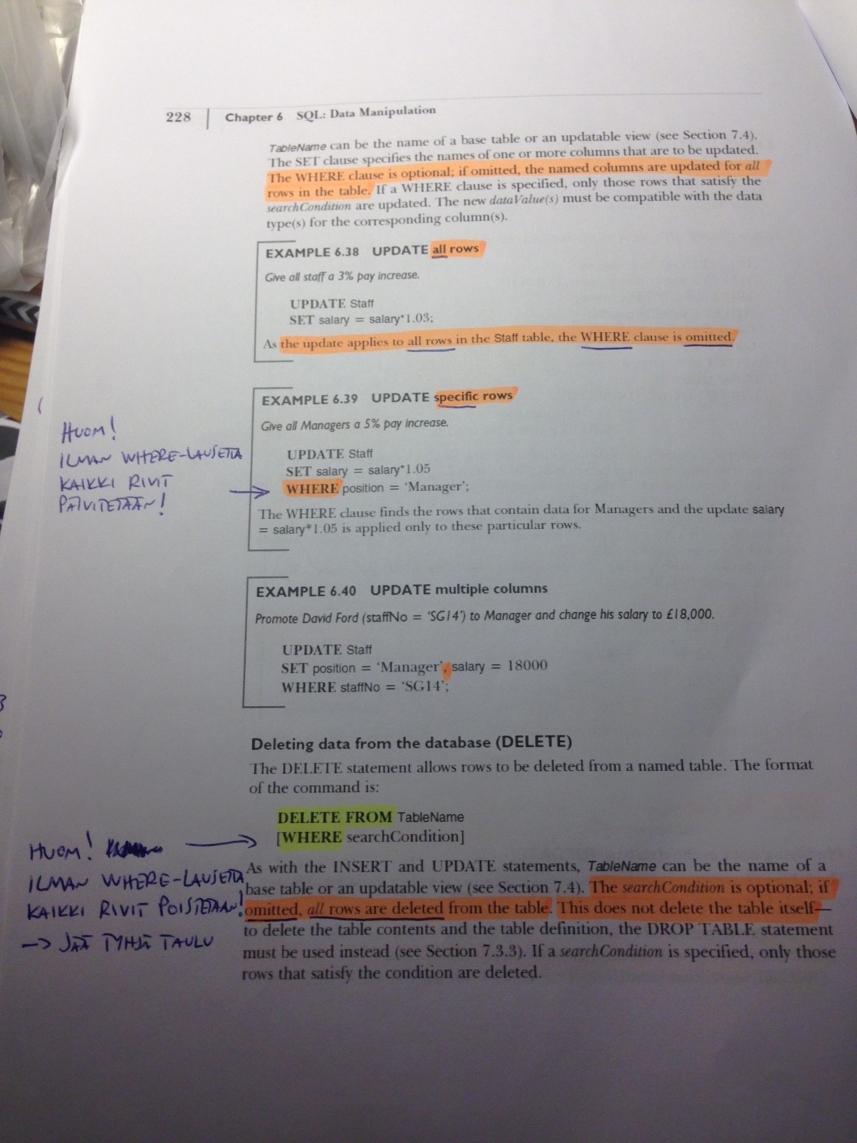 - NOT NULL täytyy määritellä taulun luonnin yhteydessä (ei voi lisätä jälkikäteen)