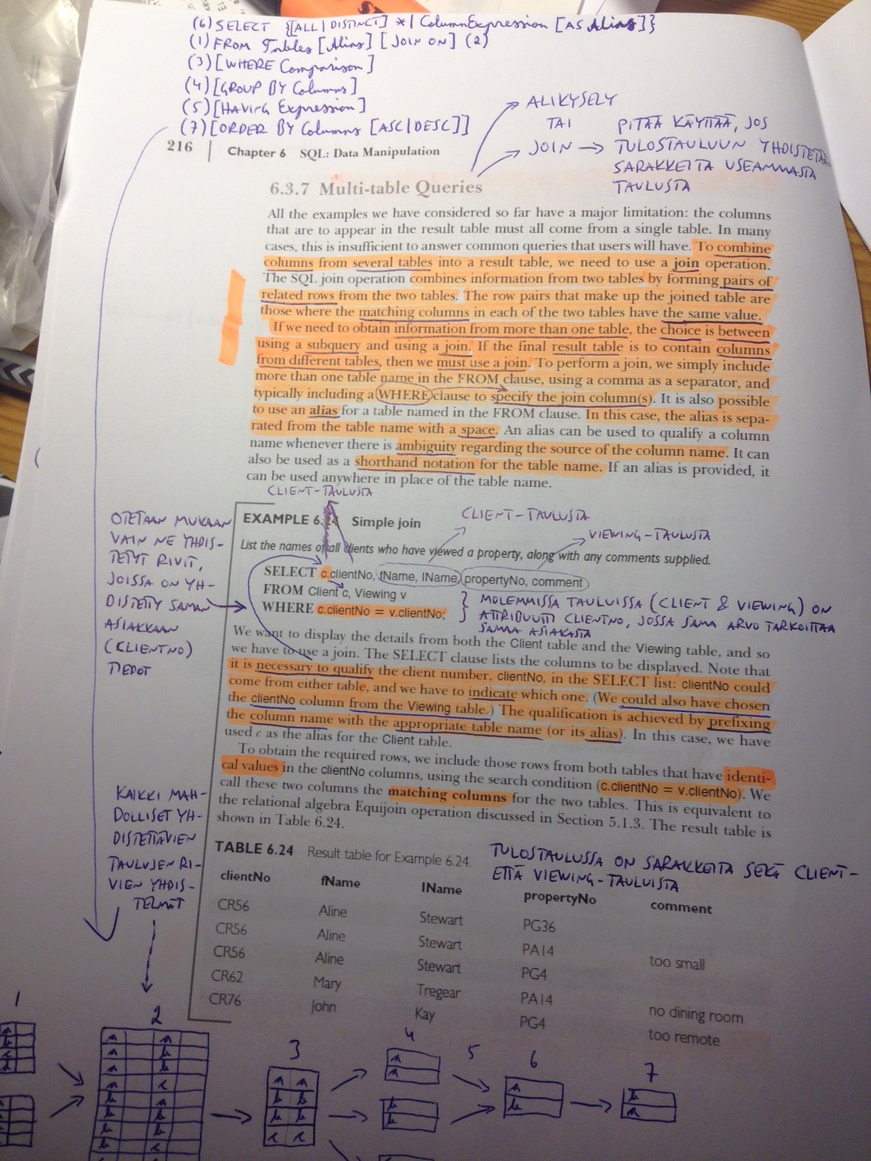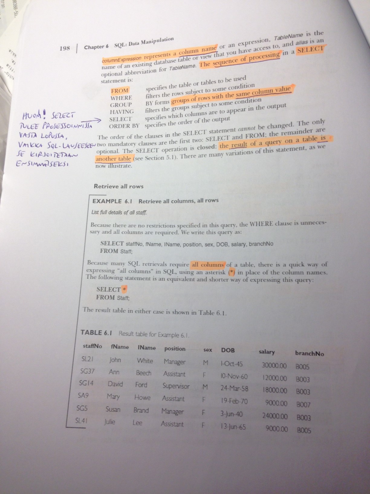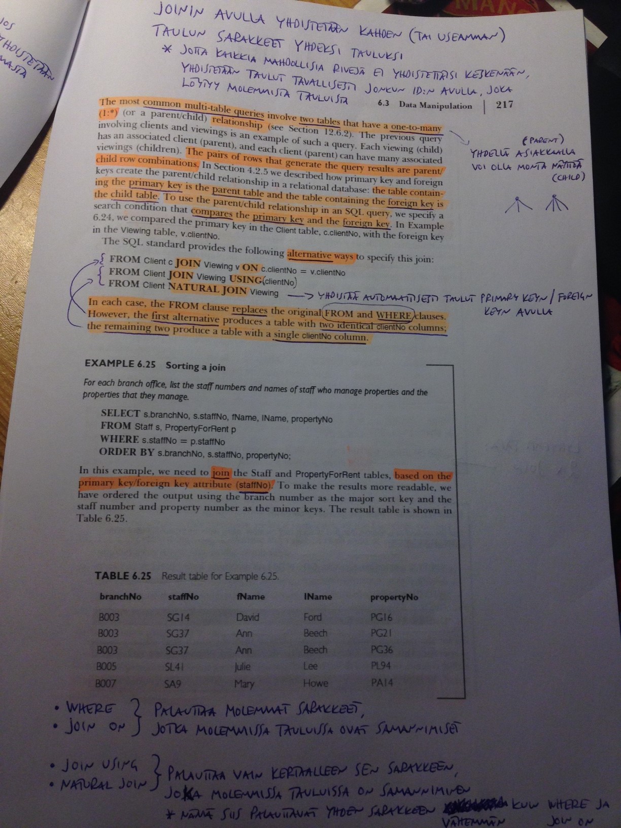 * Jos koostuu listasta asioita (kuten useampi puhelinnumero), täytyy näille tehdä uusi taulu (jossa esim. sarakkeet "henkilötunnus" sekä "puhelinnumero" --> molemmat ovat tällöin myös Primary keyta