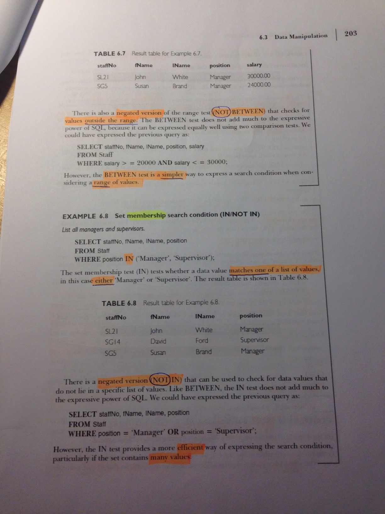 * Ensimmäisessä normaalimuodossa voidaan asiaa miettiä siltä kannalta, kuinka helppoa on kaivaa tauluista dataa: jos paljon dataa, täytyy tehdä monimutkaisia hakuja, kuten '%merkkijono%'